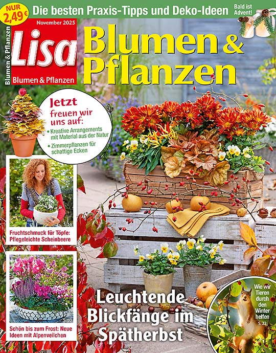Die Zeitschrift „Lisa Blumen & Pflanzen“ wendet sich an Balkon-, Terrassen- und Gartenbesitzer, die Blumen und Pflanzen lieben, gerne umgraben, rechen, jäten, gießen – aber auch kreativ sein und dazu noch herrlich entspannen möchten.